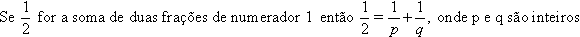 equação original, obtemos resultados 6. Portanto temos 3 soluções: (p, q) = (3,6); (p,q) = (4,4); (p,q) = (6,3).