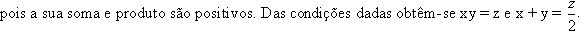 Como a e b devem ser inteiros e positivos esta última equação tem a mesma forma que a equação do Problema 1. Problema 3. A média harmônica de dois números x e y é
