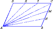 de um paralelogramo, traçar duas retas que o dividam em três regiões de