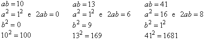 Ele compõe tais quadrados, começando por calcular os quadrados de