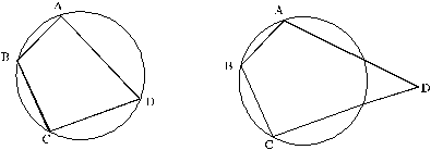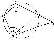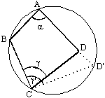 2) Vale a recíproca dessa afirmação, isto é, se dois ângulos opostos de um quadrilátero são suplementares, ele é inscritível. Se o quadrilátero ABCD não é inscritível, suponhamos que D não pertence à circunferência determinada por A, B e C.