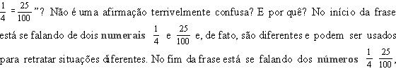 Será que o leitor já ouviu afirmações como: A palavra fração costuma ser usada, ora com o significado de numeral, ora com o significado de número racional.