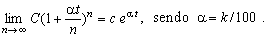 (As informações acima foram tiradas de livros de História da Matemática citados freqüentemente na RPM.) Aplicações: O número e ocorre naturalmente quando o aumento ou diminuição de uma grandeza se faz proporcionalmente ao valor da grandeza num dado instante. Os exemplos a seguir foram tirados do livro Logaritmos, de Elon Lages Lima. Juros contínuos: Se os juros de um capital C, a uma taxa de k por cento ao ano, forem capitalizados continuamente, após t anos o capital será igual a
