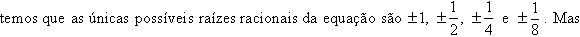 Aplicando a essa equação o conhecido resultado sobre raízes racionais de equações polinomiais:
