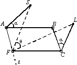 essencialmente, em quatro hastes articuladas formando um paralelogramo ABCF