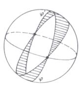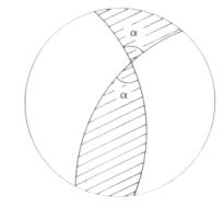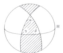região hachurada é a parte de um fuso completo contida num hemisfério