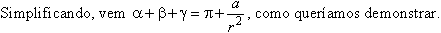 a é a área do triângulo e r é o raio da esfera. Esta fórmula