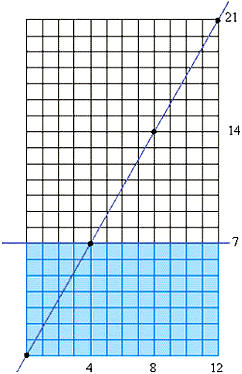 1. Considere um retângulo de lados com medidas inteiras a e b, dividido em quadradinhos unitários. 2. Trace uma das diagonais do retângulo marcando-a nos pontos que são vértices de algum quadradinho unitário. 3. Conte em quantas partes esses pontos dividem a diagonal: esse número d é o MDC(a,b). 4. Trace linhas verticais (horizontais) passando por cada um dos pontos que você marcou, unindo dois lados opostos do retângulo. Conte o número de quadradinhos unitários existentes em qualquer um dos d retângulos determinados por essas linhas verticais (horizontais): esse número m é o MMC(a,b). A figura a seguir ilustra o procedimento para a = 12 e b = 21.