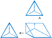 Comparando os volumes do tetraedro regular FJIC e do tetraedro não regular FJIH, observamos que as respectivas bases, CIJ e HIJ, são congruentes e, portanto, têm a mesma área, e as suas alturas relativas a essas bases são iguais, pois são exatamente a distância do ponto F ao plano que contém essas bases. Logo, os seus volumes são iguais. Como cada tetraedro t' tem o mesmo volume, pois são congruentes, então tem o mesmo volume de cada tetraedro t. Portanto, temos a decomposição do tetraedro regular T em oito tetraedros com o mesmo volume, donde concluímos que o volume de T é oito vezes o volume de t.