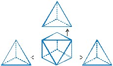 Com procedimentos análogos, obtemos mais três tetraedros regulares, cada um relativo a um dos outros três vértices de T, que são, cada um deles, congruentes ao tetraedro t e, portanto, congruentes entre si. Também denotamos cada um desses três tetraedros por t. Além desses quatro tetraedros regulares t , resta um outro poliedro, que é um octaedro regular e que denotamos por P.