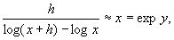 ser o logaritmo de um número x + h, próximo de x. Podemos então