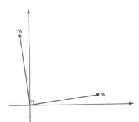 complexos. Dado z z . w = | z | . | w | . E(s) . E(t) = | z | . | w | . E(s + t). Geometricamente, esta igualdade significa que z . w é obtido de w multiplicando-se seu módulo por | z | e dando a w uma rotação de s radianos em torno da origem. Por exemplo, como i = E(p/2), dado qualquer numero complexo w, o produto iw é obtido de w por uma rotação de 90 graus no sentido positivo ( Como | i | = 1, os módulos de w e de iw são iguais).