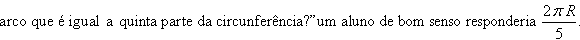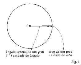 Poderíamos então concluir que dado um ângulo central de 45º, o arco correspondente mede também 45º, já do “vice-versa” concluiríamos que, se um arco mede 3 cm, o ângulo central associado também mediria 3 cm (!). Alias, exatamente a essa interpretação nos conduz um outro autor:
