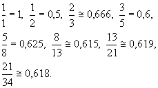 seja, É claro que isto pode ser escrito na forma (7), C.Q.D. A título de curiosidade, vamos calcular fn-1 / fn com três casas decimais, para n = 1, 2, ..., 8: