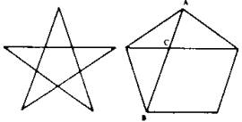 A divisão áurea é conhecida desde os pitagóricos de cinco séculos A.C. Ao que tudo indica, essa divisão foi descoberta no pentágono regular, que exibe uma surpreendente profusão de segmentos na razão áurea. Talvez este tenha sido o motivo que levou os pitagóricos a adotarem o pentagrama (pentágono regular estrelado) como símbolo de sua seita (Fig. 10).