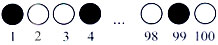 Queremos mostrar que é possível retirar duas bolas brancas e duas bolas pretas de tal forma que a soma das massas de ambos os conjuntos seja a mesma. Começamos com uma observação simples: Observação 1 Se existirem duas posições i e j tais que i + 1 < j < 100, as bolas nas posições i e j + 1 são brancas (resp. pretas) e as bolas nas posições i + 1 e j são pretas (resp. brancas), então, retirando os dois pares, a balança permanece em equilíbrio. Basta então mostrar que a situação descrita na observação 1 deve necessariamente ocorrer. Podemos supor que a primeira bola é preta. Como