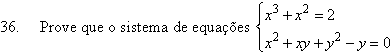 Solução: Se x > 1, temos x3 + x2 > 2 contrariando a 1a. equação. Se x < 1, x3 + x2 = x2 (x + 1) < 2 e portanto não nos interessa. Logo, se (x, y) é solução real do sistema, temos x = 1 e a 2a. equação fica 1 + y2 = 0, que não admite solução real. (Solução enviada por Trajano P. Nóbrega Neto, São José do Rio Preto – SP.)