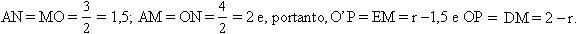 Seja Q o ponto de tangência dos dois círculos: OO’ = OQ – O’Q = 2,5 – r.