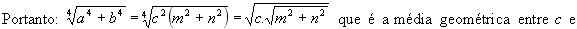 Usando a equação (I) e o Teorema de Pitágoras, construímos x2 a partir de a2 e b2. Falta obter x a partir de x2, usando o processo inverso da construção de a2 a partir da: .