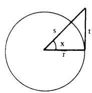 Quanto ao termo tangente, ele tem significado claro, pois tgx = t / r, onde t é o segmento da tangente compreendido entre a extremidade do raio (um dos lados dos ângulo x) e o prolongamento do outro lado. A secante do ângulo x é definida pela fórmula sec x = s / r, onde s é a hipotenusa do triângulo retângulo cujos catetos são o raio r e o segmento de tangente t. Como o segmento de retas corta o círculo (secare = cortar em latim), a denominação secante se justifica. Finalmente, cosseno, cotangente e cossecante são simplesmente o seno, a tangente e a secante do arco complementar. O professor Francisco Antonio M. da Costa também quer saber por que o círculo trigonométrico tem raio 1. Normalmente as pessoas respondem a esta pergunta dizendo o seguinte: nas definições dadas acima para tangente e secante (bem como nas definições de seno e cosseno, que não demos aqui), figura sempre o raio r do círculo no denominador. Se supusermos r = 1, as fórmulas se simplificarão bastante. Tal