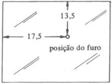 T3 Numa folha de acetato, de preferência bem rígida, faça o furo indicado na Figura 3. Os números indicam a posição do furo P. Não coloque os números nem as setas no desenho. Trace um segmento de 5 cm com origem no furo. 4.