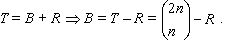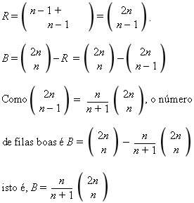 No caso geral, o número de filas boas é igual ao número de caminhos que vão da origem até o ponto N (n, n), sem passar para baixo da reta y = x. O número total T de caminhos de O até N é igual ao número B de caminhos bons mais o número R de caminhos ruins: