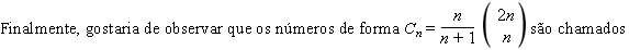 (Solução enviada por Eudes Vital Chiarelli Filho, de Belo Horizonte, que nos enviou outras 10 soluções distintas do mesmo problema.) 40. 2n pessoas foram ao cinema. A metade carrega uma nota de Cz$ 5,00, a outra metade carrega uma nota de Cz$ 10,00. O ingresso custa Cz$ 5,00 e, inicialmente, o caixa está absolutamente sem troco. De quantas maneiras distintas estas pessoas podem se enfileirar de modo que a fila possa ser atendida sem transtorno? Solução: Vamos dizer que cada pessoa que carrega uma nota de Cz$ 5,00 é do “tipo C” e a que carrega uma nota de Cz$ 10,00 é do tipo “tipo D”. Podemos assim representar qualquer fila por uma seqüência de 2n letras, onde n delas são C’s e as outras n são D’s. Vamos dizer também que uma fila é boa se resolve o problema e ruim quando não resolve o problema.