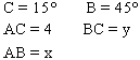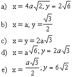 25. Se a = sen 15º, os valores de x e y na figura são: