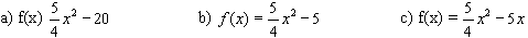 18. O gráfico de uma função tem o eixo dos y como eixo de simetria , a distância entre os zeros é 4 e tem –5 como valor mínimo. Esta função quadrática é dada por: