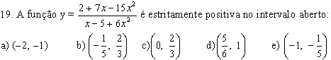 No final do 1º semestre de 1986, a Secretaria de Educação do Estado de São Paulo realizou um concurso público para provimento do cargo de Professor III em várias disciplinas, inclusive Matemática. O concurso constou de duas provas: uma de conhecimentos específicos e outra de conhecimentos gerais de Educação. Inscreveram-se para o concurso de Matemática 10 310 professores, todos com licenciatura plena em Matem’tica. Compareceram 8.971 e foram aprovados 2.231 ou seja, 24.86% dos presentes. A prova de Matemática constou de 3 questões dissertativas e 50 testes de múltipla escolha. Transcrevemos, a seguir, as questões dissertativas e os 27 testes, juntamente com o gabarito oficial: