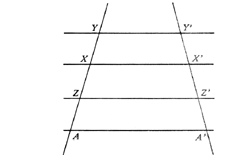 Por exemplo, vimos que, se n é um número natural, a área de um retângulo de base nb e altura h é igual a n vezes a área de um retângulo de base b e altura h. Além disso, é claro que se b < b’, então a área de um retângulo de base b e altura h é menor do que a área de um retângulo de base b’ e mesma altura. Segue-se, portanto, do que foi provado acima que para qualquer número real positivo c, a área de um retângulo de base cb e altura h é c vezes a área de um retângulo de base b e altura h. O princípio contido na observação anterior é de fundamental importância nas questões de proporcionalidade em Geometria. Um grande número dessas questões se baseia no Teorema de Tales, cujo enunciado clássico é o seguinte: “Se um feixe de paralelas é cortado por duas secantes, os segmentos determinados pelas paralelas sobre as secantes são proporcionais.”
