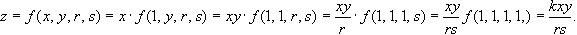 f(x, y, r, s) é diretamente proporcional a x, y e inversamente proporcional a